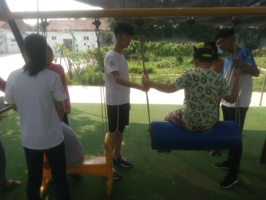 在康复中心,志愿者们熟悉了各种针对儿童的训练,学会一些简单的训练方法,在老师的指导下进行辅助训练。照顾孩子们的日常生活,帮助孩子们制作学习用具、学习基本的生活常识等。志愿者们不但照顾儿童症儿童日常生活,还帮助老师做一些力所能及的杂务,进行大型的卫生打扫活动。在这短短几天的时间里,志愿者们通过和自闭症儿童的沟通交流,进一步了解了他们的学习和生活情况,试着打开他们的心扉,使他们能融入到社会,实现自我的社会价值和人生价值。