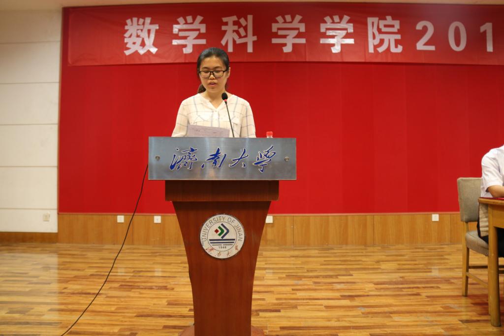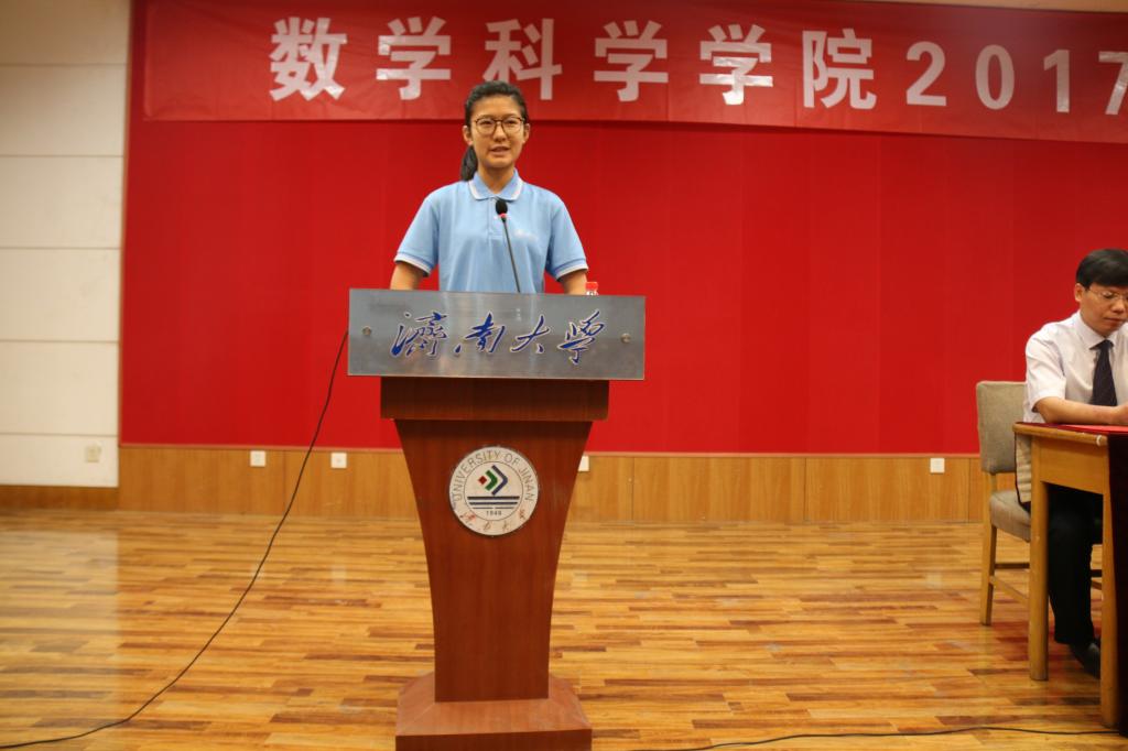 庄严的国歌结束后,学院院长管延勇首先至贺词,对全体本科生、研究生新生致以热烈的祝贺,表示学院将竭力为学生的成长、成才创造条件,建立“知识探究、能力培养、人格养成”三位一体的育人体系并,寄语广大新生要谨记学院“明德、思辨、严谨、创新”的院训,努力拼搏,实现自己的梦想。学院教师代表、学校青年教学能手、数学系主任吕洪波博士严谨又不失活泼的发言,包含了人生哲理,寄语学生珍惜时光,奋发有为,博得学生阵阵掌声;随后在校生代表、国家奖学金获得者、自慰高潮