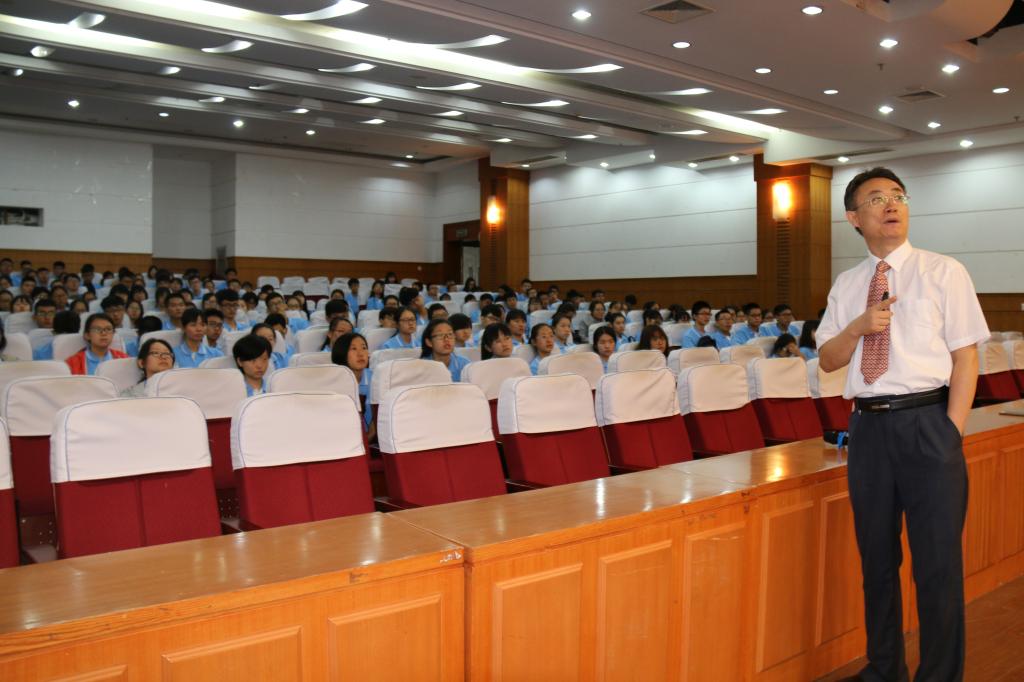 历史文化、专业体系、专业现状及在国内外的地位。管院长结合学校“弘毅、博学、求真、至善”的校训,鼓舞新生自觉养成“勤学、修德、明辨、笃实”的品质,并以数院往届优秀毕业生为榜样,鼓舞新生“长江后浪推前浪”,呼吁新生们向往届优秀毕业学习高效、快速有质量的好方法,朝着更高的目标前进。