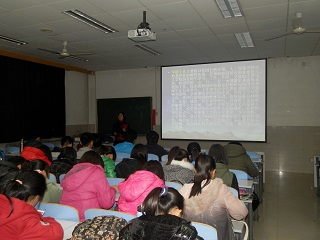 上课伊始,黄治琴老师先举了一位伟人的生日,引出“9”在生活中的奇妙与广泛,然后通过一个小游戏,用自己手机号的最后一位经过一系列的算法,来算出自己的年龄,同学们全部投入到游戏中来。随后,黄治琴老师讲解了什么是数学文化以及数学文化在生活中的应用,黄老师生动的讲解以及和同学们的互动让课程在一片生动的气氛中进行。为了让大家对数学产生更浓厚的兴趣,黄老师还举了几个重要的数学应用,让同学们了解到数学的无处不在。