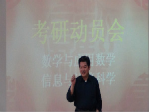此次大会由刘友谊主持进行。首先,韩振来书记就大会主题作以下几点作出阐述:他要求学生要明确自身的特点,确定自己的奋斗目标,并要求同学们要有崇高的理想,说到数学专业的核心竞争力,他讲到:“大部分专业都想要数学专业的学生,因为数学是所有理工科专业的基础学科。”另外,信念是考研必不可少的一部分,他希望学生要怀揣一颗感恩之心,为父母辛劳坚定信念,努力拼搏,对自己的未来负责。韩书记的讲话得到了全体师生的热烈掌声。随后,李可峰就学生对考研所提出的问题做详细解答。最后,刘友谊老师表达了对学生们的良好祝愿并宣布12级考研动员大会圆满结束。