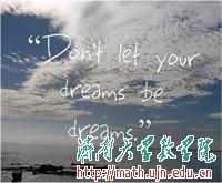 总是一度地认为自己的梦想是遥不可及的,于是把它埋在心底。每当别人问起时,也总是扯起嘴角,看似漫不经心地回答:也许吧。可是心里却涌起巨大的苦涩—我怎会没有梦想呢?总是假装听不见梦想发生的呼唤,可是内心的声音又怎么会听不见呢?2014为梦想,且行且努力!