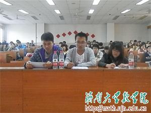 (学生记者 玄轶君 周飞 相丹)为了进一步提高我院学生的考研热情,使他们掌握相关考研技巧,5月11日,由数学院学生会主办、学习部承办的考研经验交流会在11教1段101教室举行。本次交流会邀请了数学院2010级考研成绩优异的吴振峰、聂超和李晓蓉交流考研经验。
