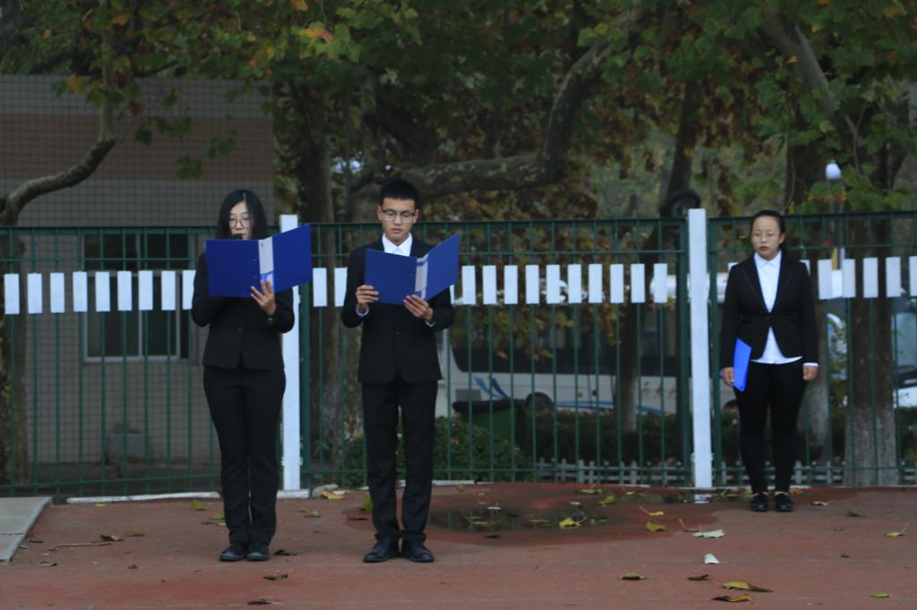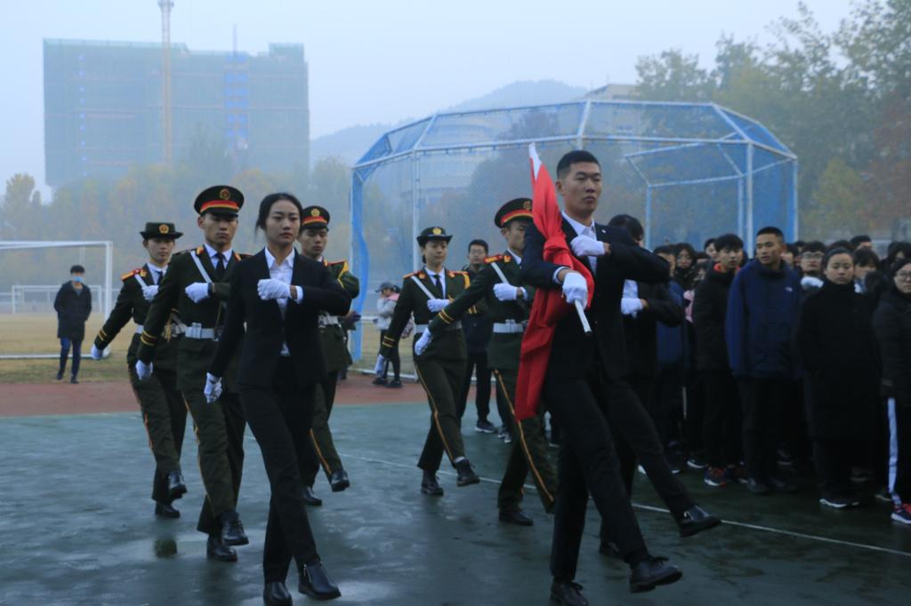 早6:30,全体人员集合完毕,准备迎接着这一神圣而庄严的时刻。升旗仪式开始前,队列严肃整齐。随着主持人宣布升旗仪式正式开始,国旗班升旗手们迈着坚实而又整齐的步伐出旗。国歌奏响,国旗手将国旗抛起,同时全体人员奏唱国歌、行注目礼,国旗伴随着国歌冉冉升起。随后,新生代表商玮超以“青春志,中国梦——青年要立志做大事,不要立志做大官”为主题发言,呼吁新生们要志存高远,意志坚强,敢于有梦、勇于追梦、勤于圆梦,把人生志向融入国家和民族的大事中,为实现中国梦添砖加瓦。紧接,新生辅导员耿婉茹发言,教诲学生要修炼品德、认识自我、坚持奋斗、努力追逐梦想,鼓励同学们在人生前进的道路上心志坚定、学会思考、善于分析、正确抉择。最后,耿老师向新生们提出“青年要立志做大事,不要立志做大官”,告诫大家不能贪图享乐、急功近利,要在激情奋斗中绽放青春的光芒。