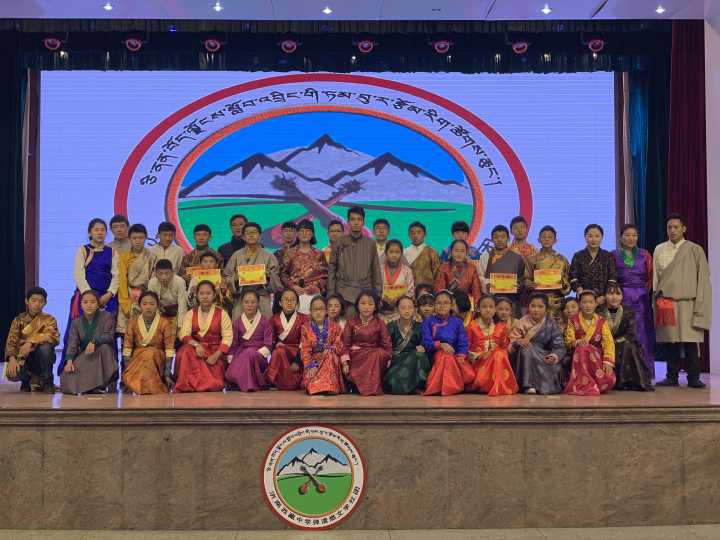 志愿者和孩子们在八点半准时到达大礼堂。伴随着藏族特有的舞蹈与现代化的配乐,比赛拉开了帷幕。孩子们用她们略显稚嫩的声音认真的比赛,虽然志愿者们听不懂他们说的藏语,但是他们依旧体会到了诗歌想表达的情感与藏语的独特魅力。比赛中穿插了一些藏族舞蹈与歌曲,优美的旋律与曼妙的舞姿每次都能引起台下巨大的反响,志愿者也通过这些节目对藏族文化有了更具体的理解。比赛快结束时为书法比赛的获奖同学进行了颁奖,孩子们工整灵动的字体让志愿者惊叹不已。最后是朗诵比赛的颁奖,志愿者有幸被邀请去给获得一等奖的同学颁奖。伴随着音乐的响起,比赛落下帷幕,志愿者们与孩子们依依惜别。