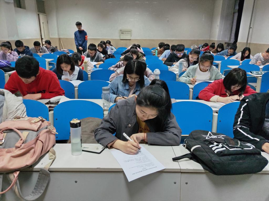 测试开始前,青协与服务队依次隔开就坐,确保了测试的公平公正和结果的可信度,干事们在开考前认真翻阅以往开会记录的笔记,都希望能考一个满意的成绩。考试进行中,每名干事都十分认真地在试卷上作答,值得一提的是,虽然这是一次测试,但是考试的氛围却一点也不严肃,偶尔部长们也会与干事们进行一些交流,将青协大家庭的理念体现的淋漓尽致。考试结束后,轮值部长们分享了自己在轮值期间的经验和不足之处,部长们也对轮值部长的工作提出了合理的建议,为下一任的轮值部长们指明了工作的方向。