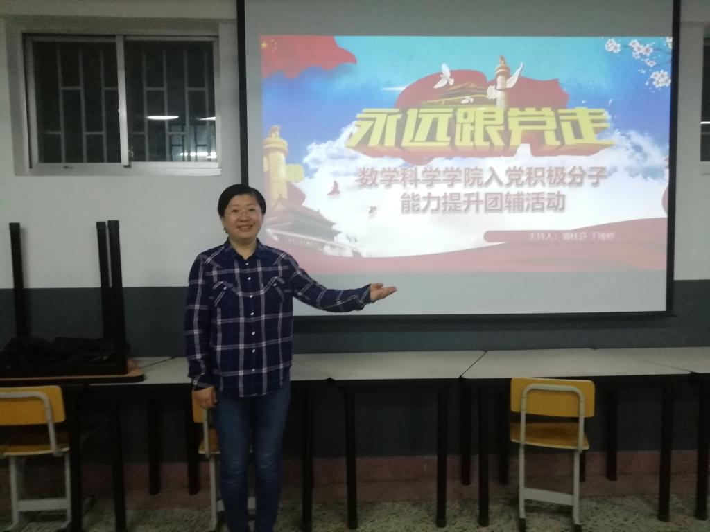 在四教504、505举办“知党爱党”入党积极分子团体培训活动,第34期64名积极分子积极参与,郭桂芬老师担任活动主讲人。