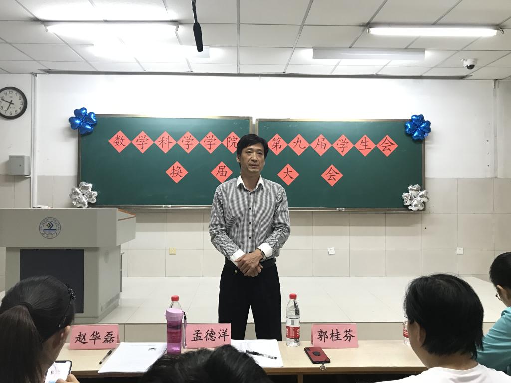 在二教105召开了第九届学生会换届大会。出席本次大会的人员有学院党委副书记、副院长孟德洋,学办主任郭桂芬,团委书记赵华磊,17级辅导员吴立军,18级辅导员耿婉茹以及第九届学生会全体成员。