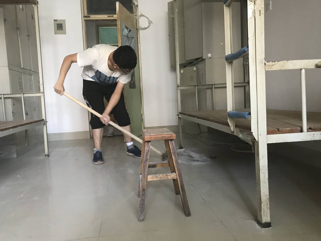 下午两点,按照事先的安排与分工,所有同学带上拖把、扫把、抹布等清洁工具来到了新生宿舍。宿舍楼里,随处可见大家忙碌的身影,大家不怕脏不嫌累,通力协作,擦拭桌椅、去除污渍、清洁地板,不留下任何一个死角。之后,同学们将自慰高潮