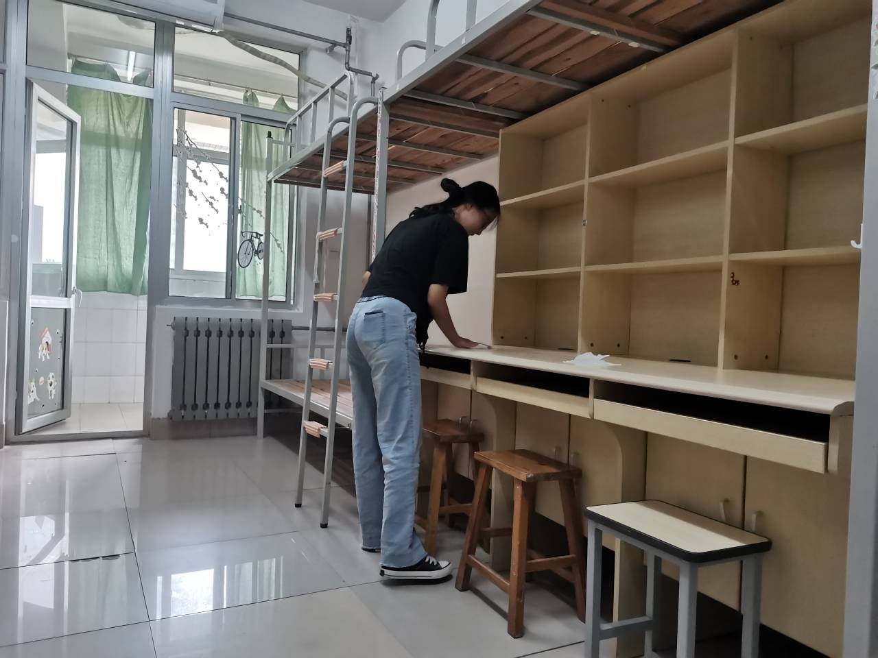 志愿者按照按照既定部署和分工,将宿舍卫生清洁工作进行了分配,力争做到不留死角、不留盲区。活动中,志愿者们热情高涨,干劲十足,充分发挥“奉献、友爱、互助、进步”志愿者精神,对宿舍地面以及卫生间进行了全面清扫,短短半天时间,宿舍卫生环境焕然一新。