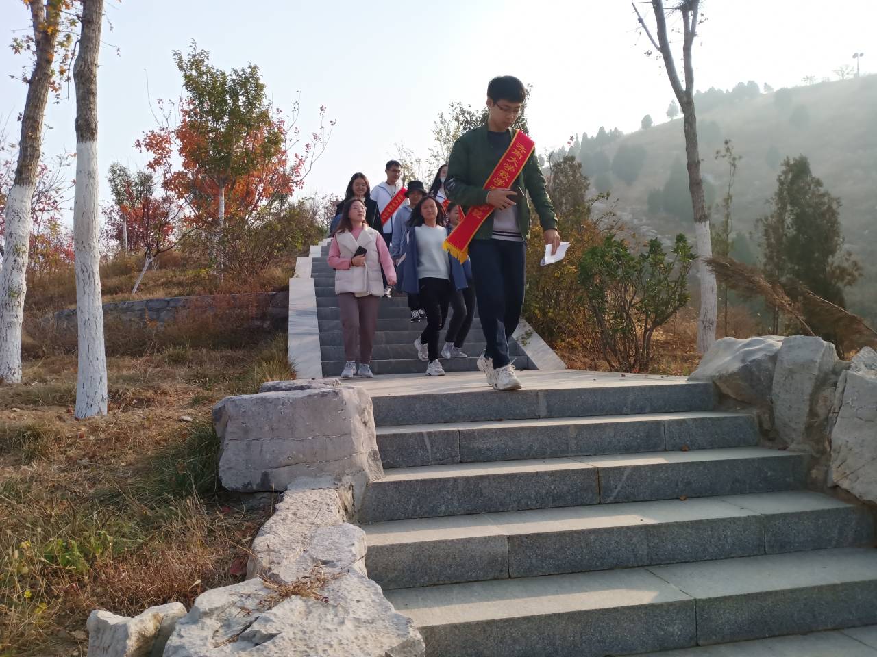 青年志愿者协会的志愿者向同学们明确好登山纪律和注意事项,登山过程中同学们积极的弯腰捡起身边的垃圾,主动清除山路边易燃的隐患物品,同学之间互相帮助,相互鼓励登上山顶。在山顶上,志愿者向同学们讲述山林防火安全知识,介绍山林火灾发生的常见原因,突出强调了发生山林火灾时我们应该怎样做,并通过提问问题的方式加深同学们的防火意识。最后,志愿者着重呼吁同学们积极主动向身边的家人、朋友宣传消防安全防火知识,增强防火安全意识,预防和减少火灾的发生。