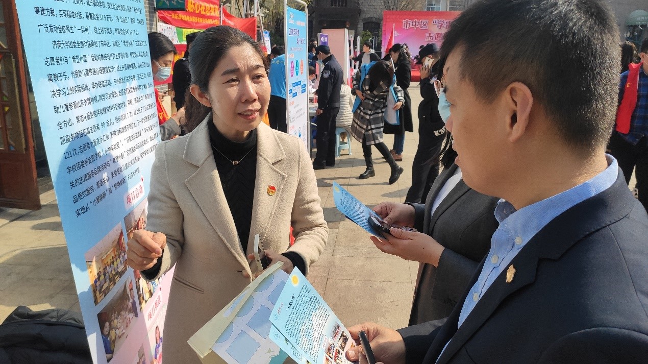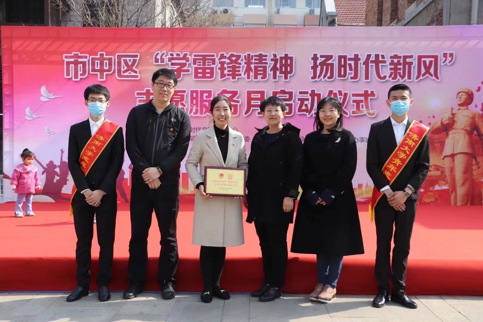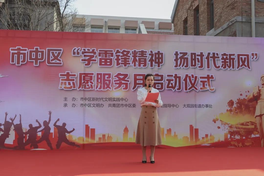 团委书记赵华磊老师带队,参加了由市中区新时代文明实践中心主办,区文明办、共青团市中团区委、大观园街道办事处、济南市市中区志愿者联合会承办的市中区“学雷锋精神 扬时代新风”志愿服务月活动。市中区共12支新时代文明实践志愿服务队、部分区直单位志愿服务队和各类爱心志愿服务队的代表及街道团工委共150多人参与本次启动仪式。