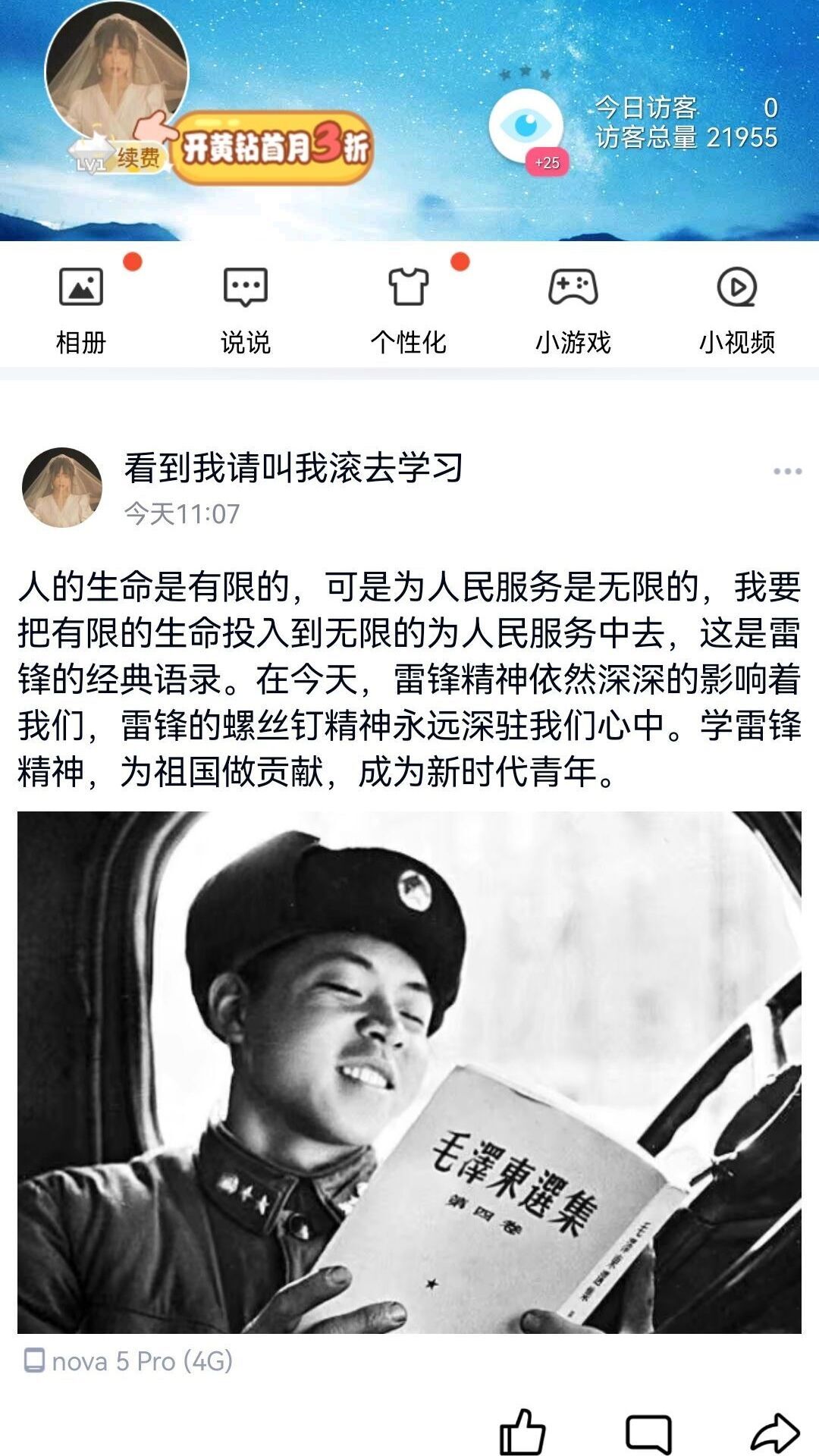 青年志愿者协会志愿者通过文字短文的形式向同学们讲述有关雷锋同志感人至深的英雄事迹,激起了同学们学习雷锋的高潮。紧接着志愿者组织同学们将自己想对雷锋说的话发布至社交平台并对有关页面进行截图并上传至群相册的方式,表达自己对雷锋同志的钦佩之情,同学们踊跃发言,积极参与其中。最终活动取得圆满成功,学雷锋做雷锋的信念深深扎根,雷锋精神更是充溢在每个人心中。