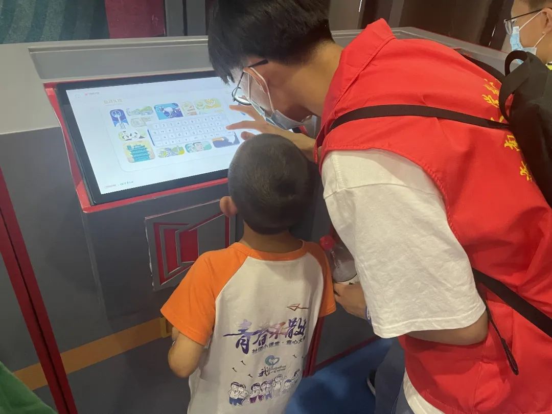 志愿者们首先带孩子们去到了奇妙剧场观看了儿童剧《国宝总动员》,深入了解我国悠久的文明历史,瑰丽的文化传统,进一步培植民族自豪感。随后,志愿者和孩子们还去到了360极限飞球体验了沉浸式的动感飞行影院。研学活动的最后一站是中国国家地理探索中心,到达了探索中心后,志愿者带领孩子们在各个展馆内游玩,并在游戏的过程中普及科学知识。在恐龙发现馆内进行模拟化石挖掘,并结