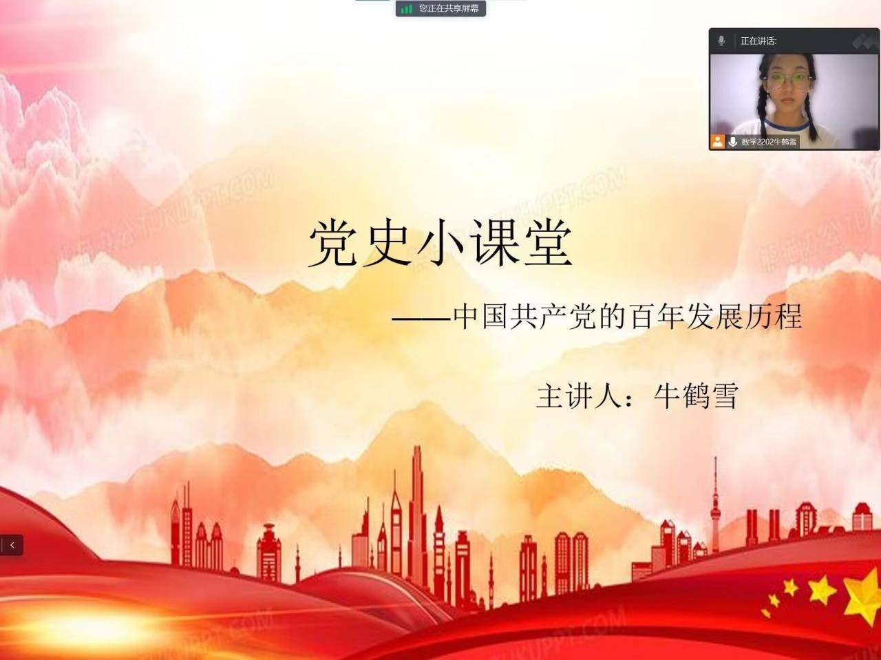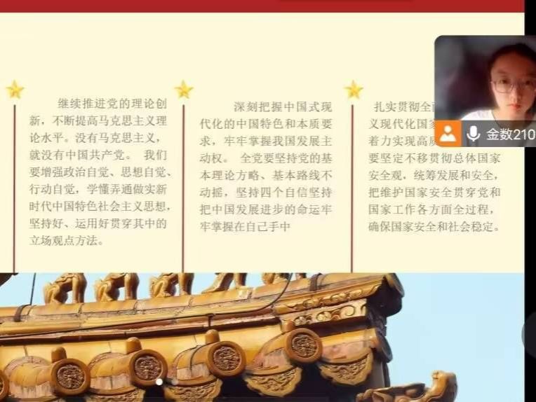 实践队员们利用网络平台进行广泛宣传,打造“身边的课堂”,借助腾讯会议、群课堂等软件进行了课堂直播。线上课堂主要面向青少年群体,队员们积极组织中小学的学生们加入到课堂学习中。课堂内容以“中国共产党的百年发展历程”为主题,包含“百年内的典型事例”、“百年内的精彩人物”、“百年内的精彩故事”等多方面的内容。实践队员们为线上宣讲做了充足的准备,从多个平台、多个方面收集了有关党的百年发展历程的相关资料,同时也准备了演示动画、视频、图片等帮助听众更好地投入到课堂当中。队员们的认真讲解也让听众们学到了更多的红色文化,对党史有了进一步的了解。
