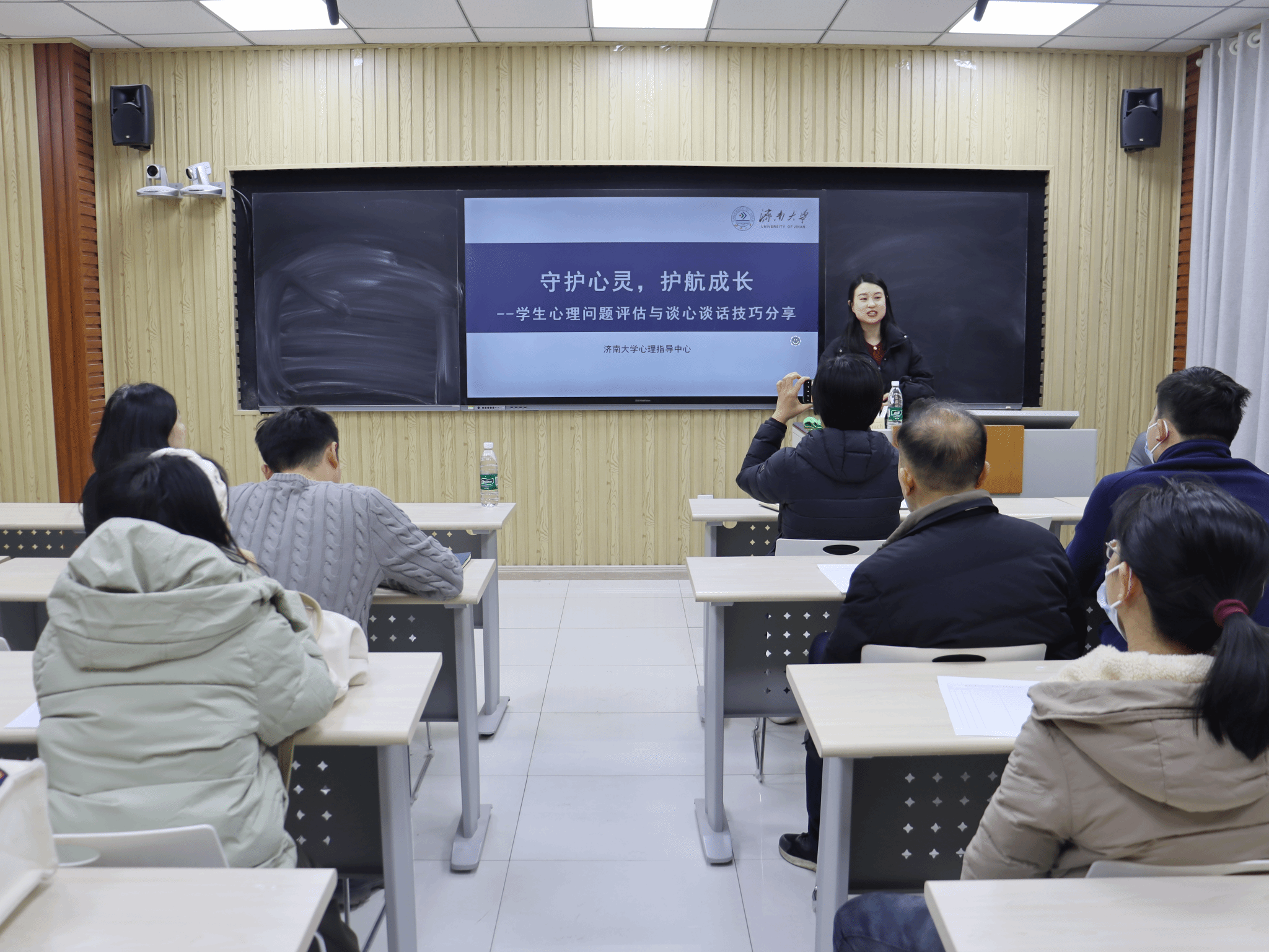 会议伊始,蔺琦琦围绕大学生心理健康工作核心要点,从识别、区分、评估、干预四大维度展开系统讲解。她指出,大学生心理问题常呈现“中学压抑、大学爆发”的特点,需重点关注三类学生群体:“带病入学”学生、心理危机高风险特征学生及心理潜在风险特征学生,并针对每一类学生提出了具体的关注措施。在心理问题区分环节,着重讲解了如何区分一般心理问题、严重心理问题、神经症性心理问题。紧接着,针对心理问题评估与风险识别,蔺琦琦强调需从一般情况、感知觉、思维形式与内容、注意力记忆力、情绪与行为、自知力六个方面开展全面评估,重点关注家庭变故、人际关系破裂、社交平台自杀厌世言论、重大身体疾病等危险信号,秉持“宁错报不漏报”的原则筑牢预警防线。