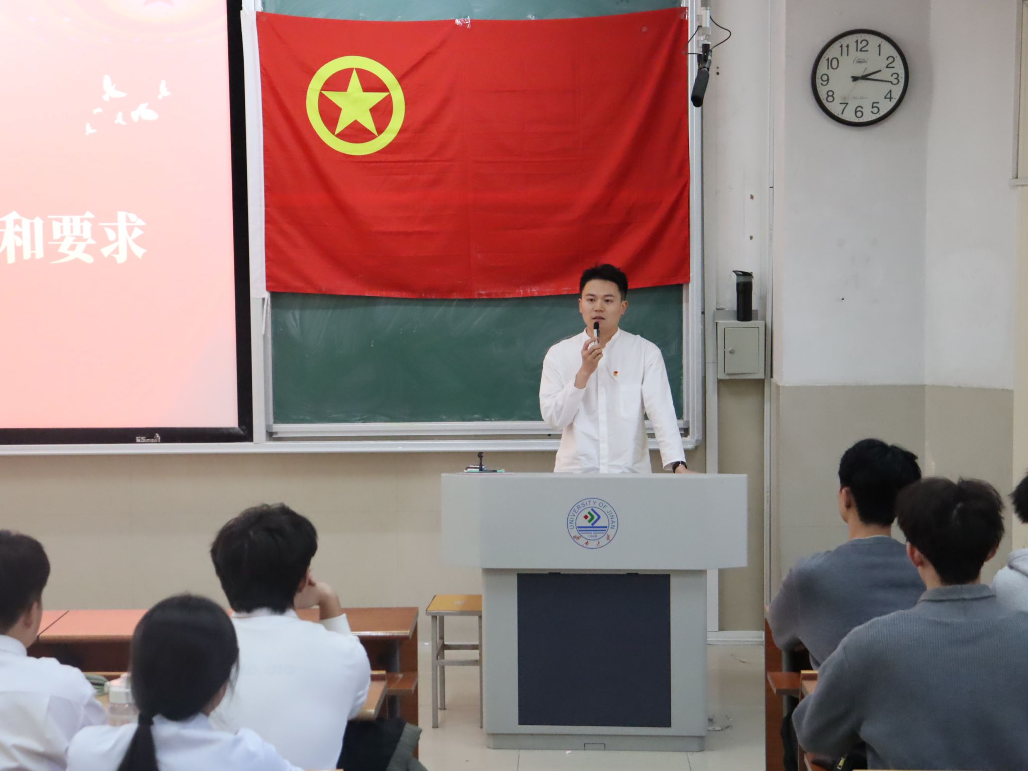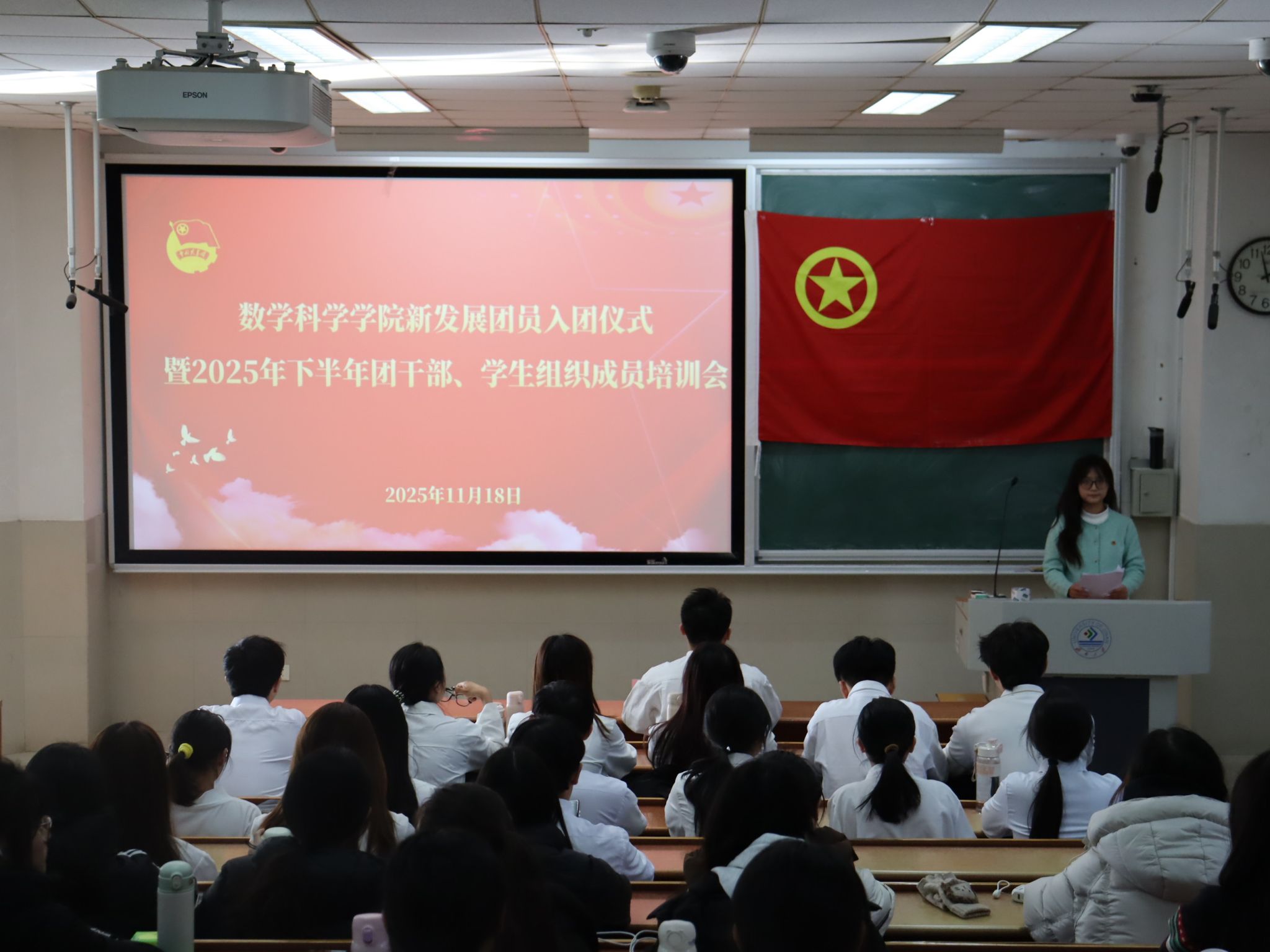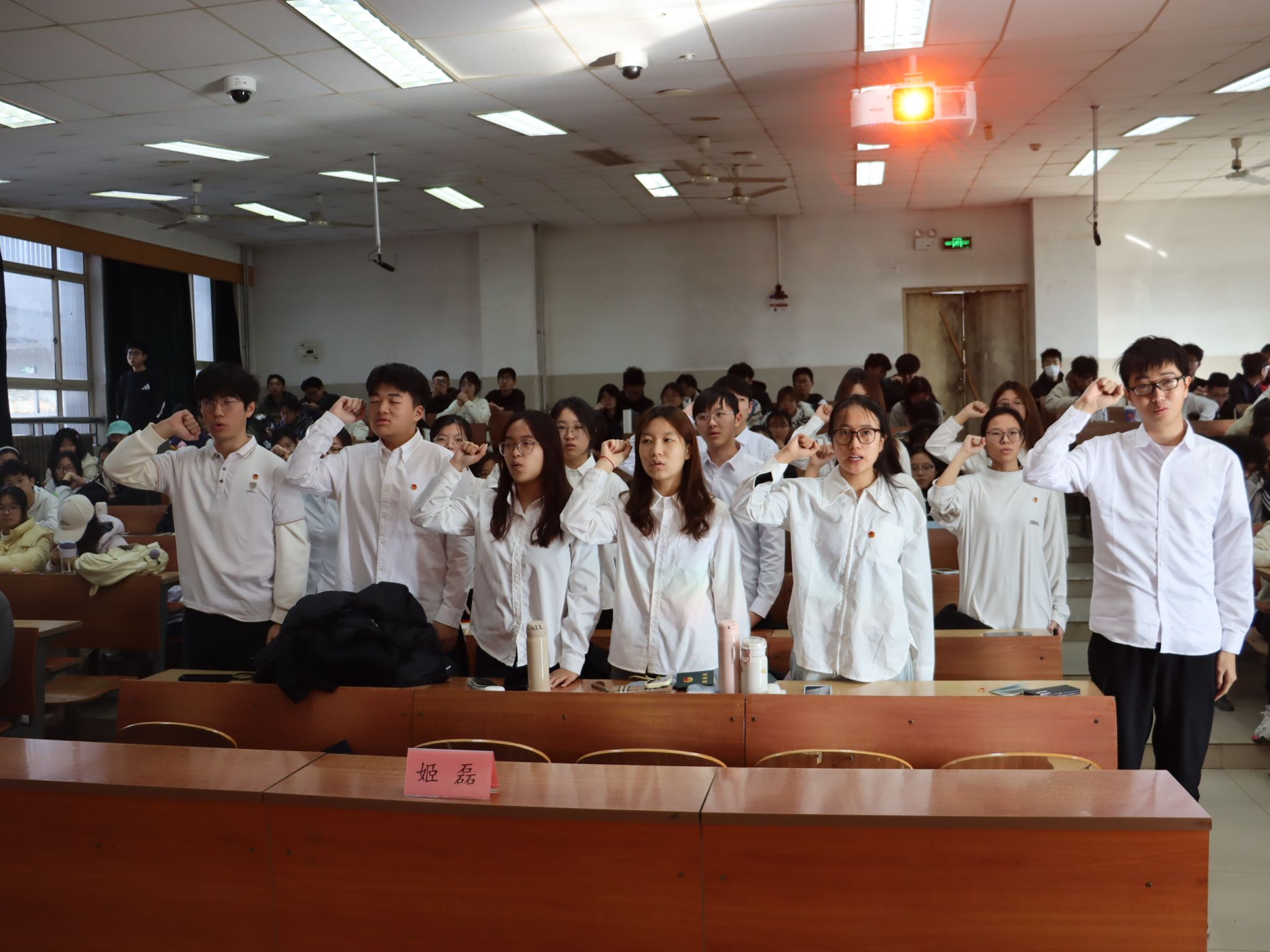 团委于11月18日在11J1302教室举行2025年下半年新发展团员入团仪式暨团支部书记专题培训会。学院团委书记姬磊、2025年下半年新发展团员、全体团支部书记及学生组织干部参加本次活动。